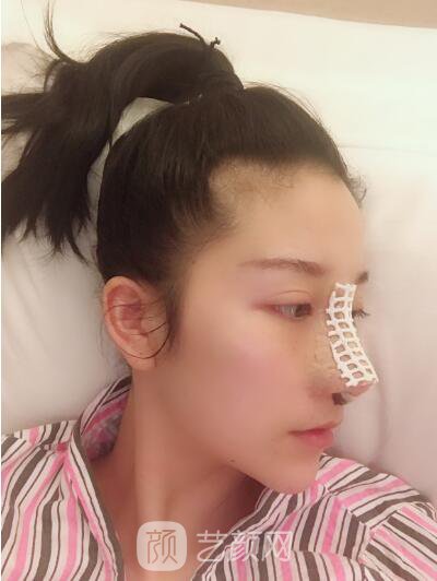 手術(shù)第五天的樣子,因?yàn)槲壹冶容^遠(yuǎn),我就選擇的住院,也方便手術(shù)第七天的時(shí)候來拆線,現(xiàn)在看起來我的韓式翹鼻,果初現(xiàn)!
