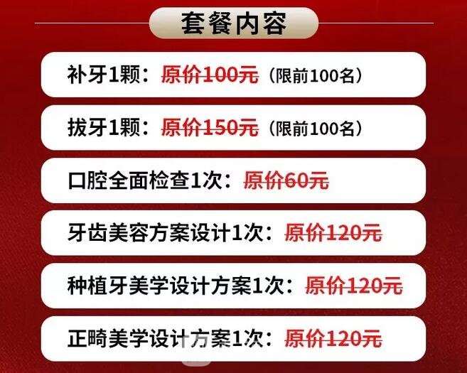 齲齒補(bǔ)牙 …………………… 200元
