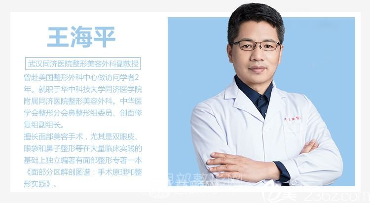 王海平:副主任醫(yī)師,副教授,擅長(zhǎng)面部美容手術(shù),尤其是雙眼皮、眼袋和鼻子整形等,在面部脂肪修飾年輕化和更美輪廓方面富有經(jīng)驗(yàn),倡導(dǎo)面部綜合整形。除錦上添花的美容手術(shù)外,致力于復(fù)雜的頭面部先天性、外傷、燒傷和血管瘤等導(dǎo)致的畸形、體表大腫瘤手術(shù)后、面癱的修復(fù)重建。